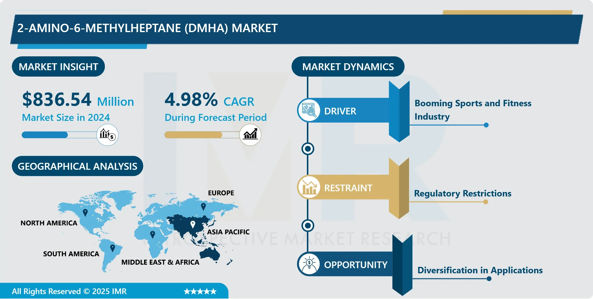 “According to a new report published by Introspective Market Research, the 2-Amino-6-Methylheptane (DMHA) Market by Form, Application, and Distribution Channel, the Global 2-Amino-6-Methylheptane (DMHA) Market Size Was Valued at USD 836.54 Million in 2024 and is Projected to Reach USD 1,427.77 Million by 2035, Growing at a CAGR of 4.98% from 2025 to 2035.”