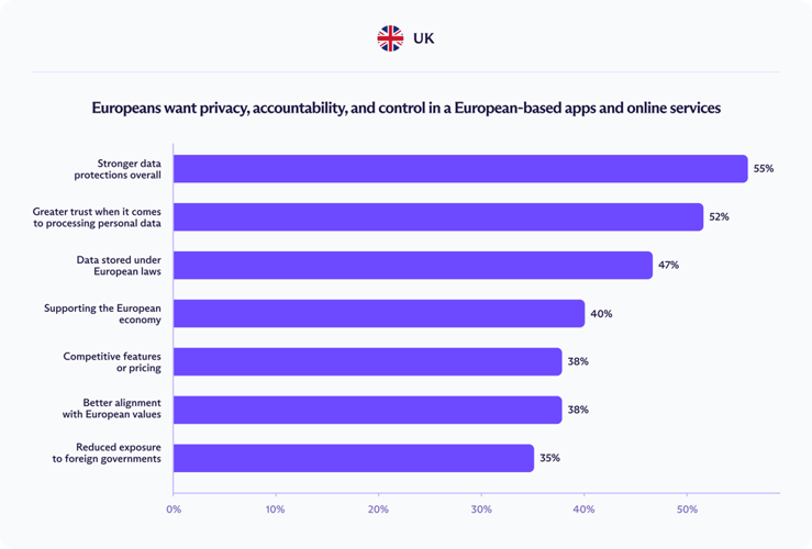 The research suggests a potential shift in consumer behavior is underway, with 57% of respondents indicating willingness to switch to European alternatives when possible. This trend toward "digital sovereignty" reflects growing awareness that geographic jurisdiction matters significantly in how personal data is handled and protected.
