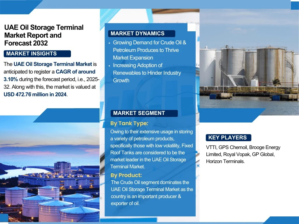 The Report Cube, UAE based a trusted name in global market intelligence and strategic research, has recently released an in-depth analytical overview of the UAE Oil Storage Terminal Market, highlighting key developments, strategic expansions, and competitive movements by major industry participants. The study captures recent expansions such as product innovations, mergers and acquisitions, partnerships, and geographic expansions that continue to shape market momentum.