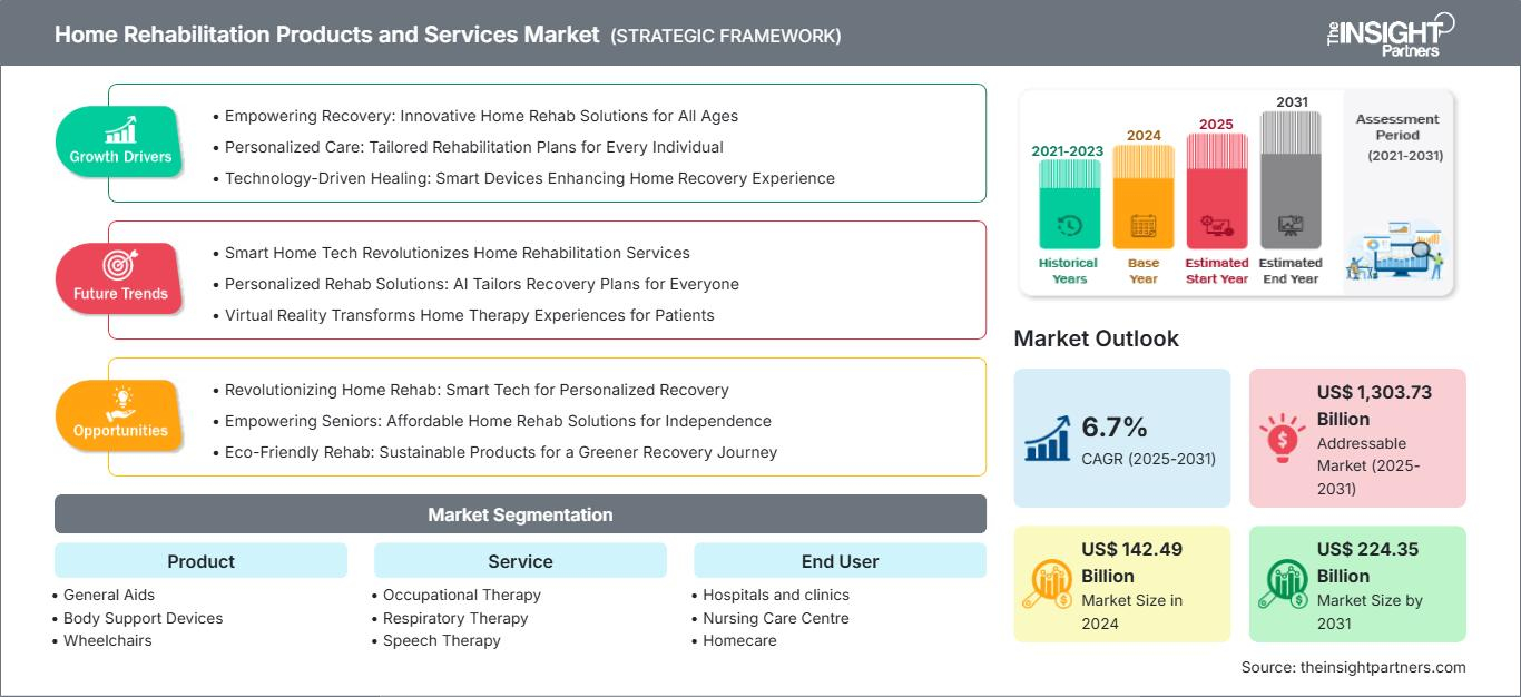 The Home Rehabilitation Products And Services Market size is expected to reach US$ 224.35 Billion by 2031. The market is anticipated to register a CAGR of 6.7% during 2025-2031.