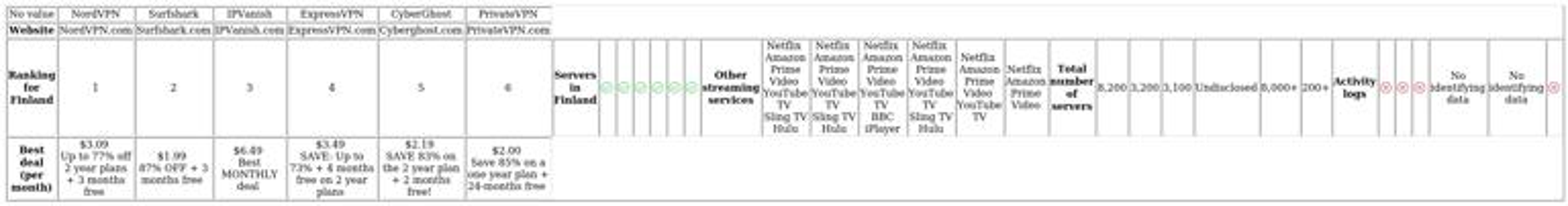 Speed, privacy protections, streaming access and Finnish server availability were key factors in our assessments.