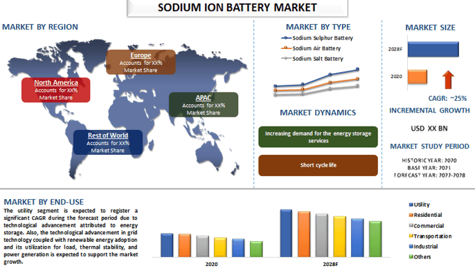According to a new report published by UnivDatos, The Sodium Ion Battery Market is expected to grow at a CAGR of around 25% from 2022-2028. The analysis has been segmented into Type (Sodium-Sulfur Battery, Sodium-Air Battery, and Sodium Salt Battery); End-Use (Utility, Residential, Commercial, Transportation, Industrial, and Other); Region/Country.