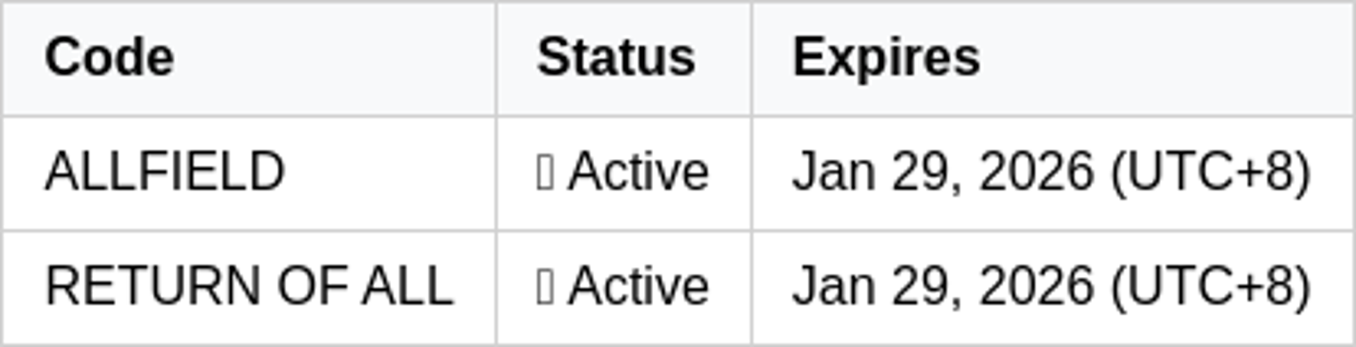 As of January 19, 2026, only two codes have been officially released during the launch event. Both are redeemable starting from the game's release and will expire at 11:59 pm UTC+8 on January 29. Stay tuned for updates, as additional codes may be unveiled through future events or live streams by Hypergryph.