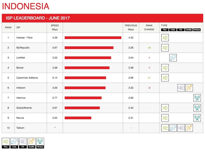 MyRepublic in Indonesia posted the most significant speed improvement globally in June, rising by 0.41 Mbps.