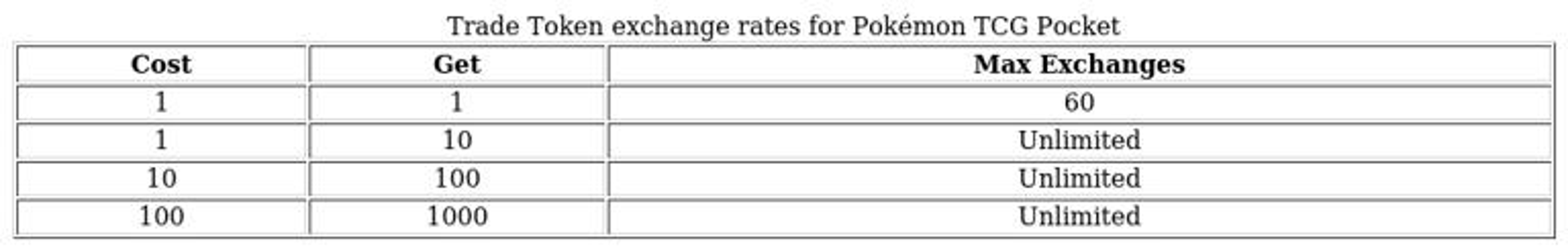 • October 2025: 2-star, 1-shiny, and 2-shiny cards from the current set (including Deluxe Pack: EX and Mega Rising) are now tradable.