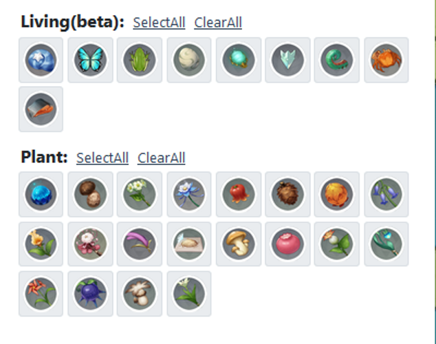 Vous pouvez filtrer l'affichage pour ne montrer que les ressources spécifiques dont vous avez besoin, comme les grenouilles, et localiser précisément leurs points de collecte.